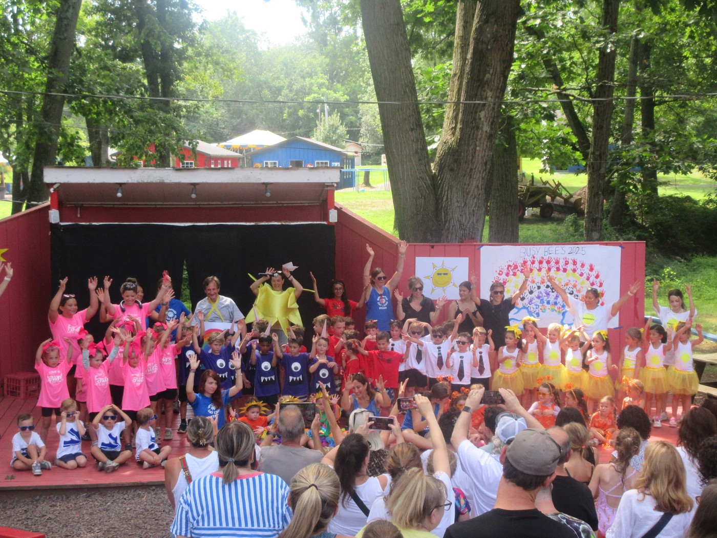 Our 2025 Busy Bee Show, entitled “The Day the Colors Got Lost” was a joyful story that was about more than just adorable campers dressed in fun costumes and dancing to music. It highlighted the importance of friendship, teamwork and belonging. Through the playful adventure of Grumble Gray, children discovered that every color was important and – just like every camper – each color makes the world brighter. When we work together and share our colors, we can build something beautiful and show that there’s always room for everyone in the rainbow….even Grumble Gray!